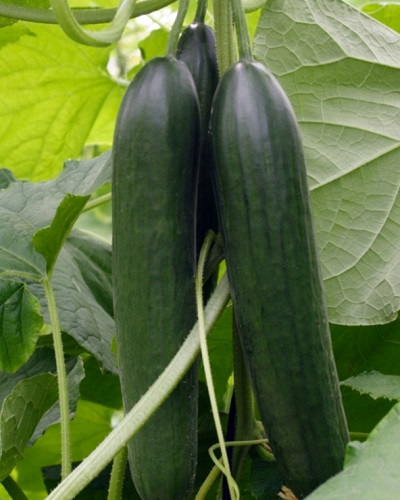 این نوع خیارها دارای میوههای طویل و نسبتا باریک با انتهای گرد هستند. ارقام گلخانهای هلندی، پارتنوکارپیک با ظاهر جنیسس و پتانسیل بازده بالا هستند در حالی که خیارهای گلخانهای ژاپنی اغلب تک پایهای هستند. برخلاف انواع مورد استفاده برای مصرف خام و فرآوری، خیارهای گلخانهای پوست نسبتا صافی دارند.