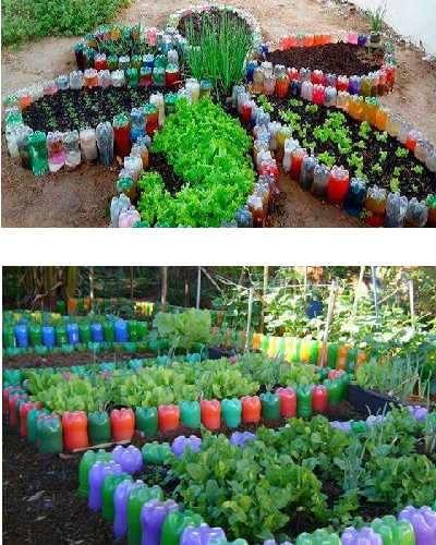 درست مانند این عکس، با استفاده از بطریهای پلاستیکی باغچه خود را به چند قسمت تبدیل کنید. با قسمت بندی کردن باغچه، مناطق بیشتری برای کاشت گیاهان میتوانید داشته باشید.