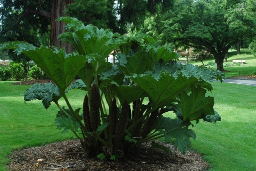 ریواس غول پیکر یک گیاه چند ساله است که ارتفاع آن 2/5 تا 4 متر می باشد. اندازه برگ این گیاه بیش از یک متر است و حدودا 122 سانتی متر می باشد. در اوایل تابستان گل های سبز و قرمز کوچکی روی شاخه های مخروطی رشد می کنند و بعد از آن میوه های کروی و کوچکی شکل می گیرند. اما این گیاه بیشتر برای برگ آن کشت می شود. این گیاه بهترین رشد را در شرایط مرطوب دارد مثلا در کنار استخر باغ ها. کاشت این گیاه در باغ و یا در فضای سبز منظره فوق العاده زیبایی را به وجود می آورد. هرچند نام این گیاه ریواس غول پیکر است ولی ارتباطی با گیاه ریواس ندارد. با توجه به گیاه شناسی سان فرانسیسکو، زمانی که ریواس غول پیکر جوان است خوراکی بوده و از برگ و ساقه آن در سالاد استفاده می شود که طعم بسیار خوبی دارد. این گیاه به طور معمول در جزیره اسکاتلند رشد می کند و مردم در شب بعد از بازی های کوهستانی آن ها را برداشت کرده و از آن به عنوان چتر استفاده می کنند.